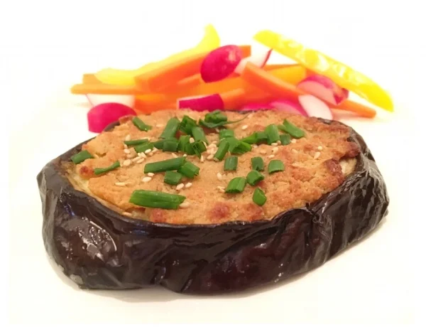 Return eggplant to the oven and bake for a further 10-13 mins, or until topping has turned golden brown.