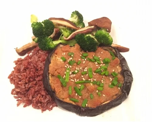 Prep time: 5 mins (plus additional 30 mins to allow eggplant to sweat)
